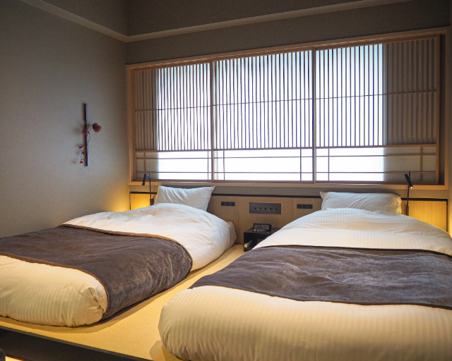 京都らしさを感じるモダンな畳のお部屋が落ち着く。