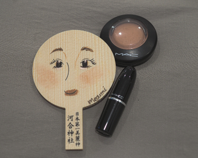 自分のメイク道具や色鉛筆などを使って美麗祈願の鏡絵馬を描いて、