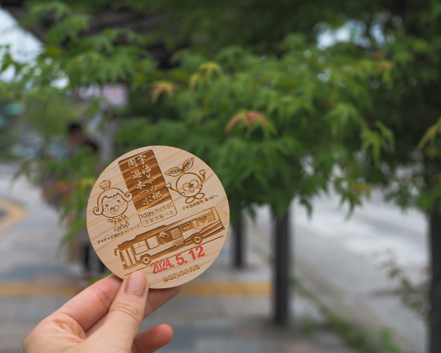 珍しい木製切符には数量限定の宇治のキャラクターデザイン。