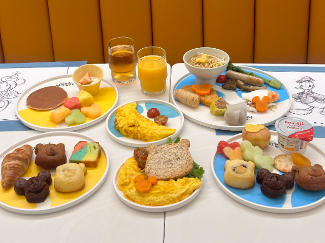 ここではキャラクターがランダムででてきてくれて、ブッフェを楽しみながら写真撮影ができます!