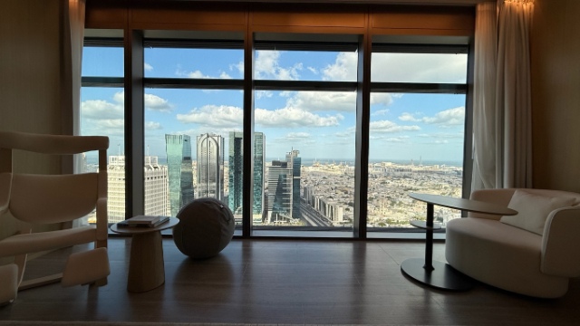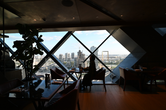 ドバイの街並みを見ながらのストレッチは、優雅な気分に浸れます。