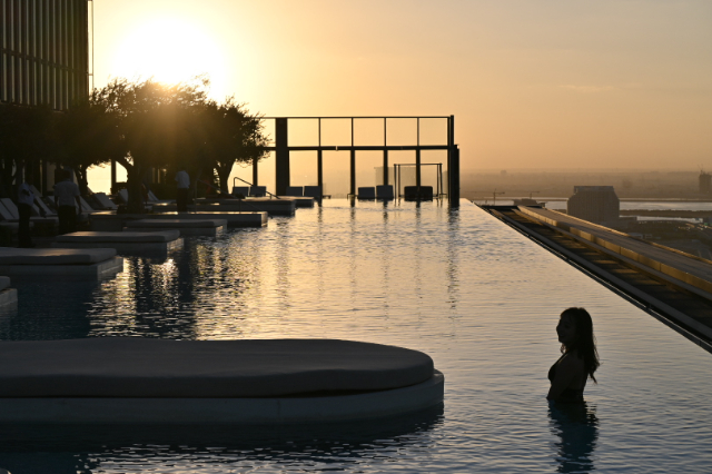 高層階のプールから眺める朝焼けは本当に贅沢でした!