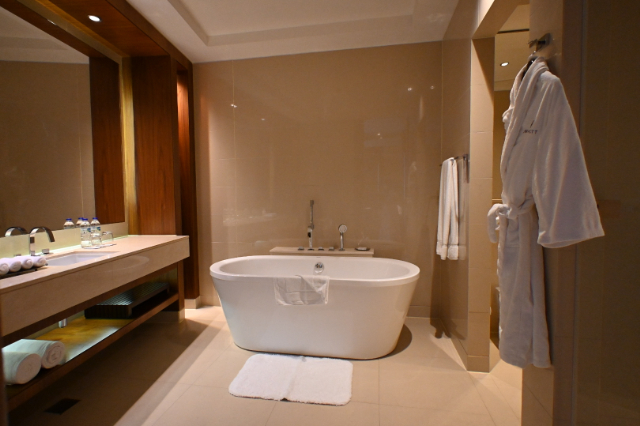バスルームも写真では伝わらないくらい広々で、大きなバスタブもあり、ゆっくり過ごすのに最適。