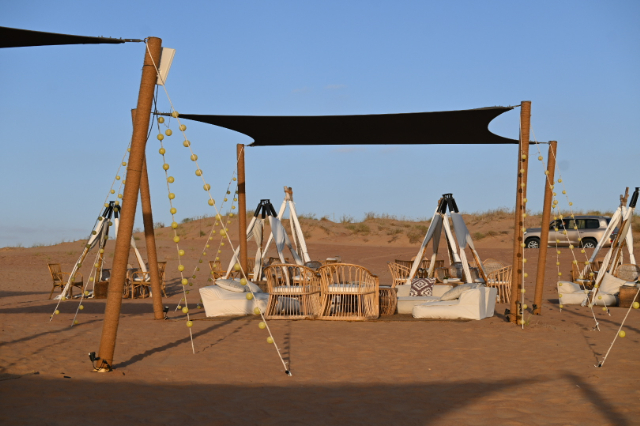 Sonara Campはドバイ砂漠保護区内の壮大な砂丘のロケーションで、ラグジュアリーディナーや、エンターテイメントショーという非日常体験ができます。
