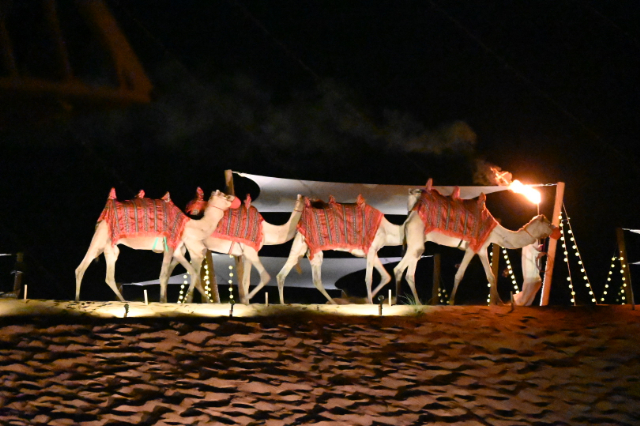 砂漠の真ん中で、多彩なエンターテイメントショーを楽しみながら、美味しい食事を頂き、ラストナイトに相応しい時間が過ごせました。