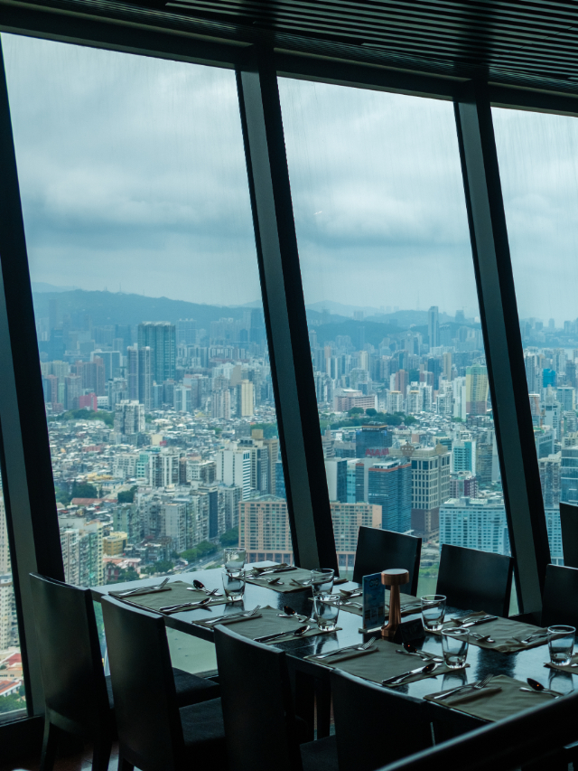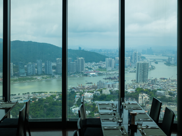 食事をしながら、マカオの街全体を見ることができる、天空カフェ。