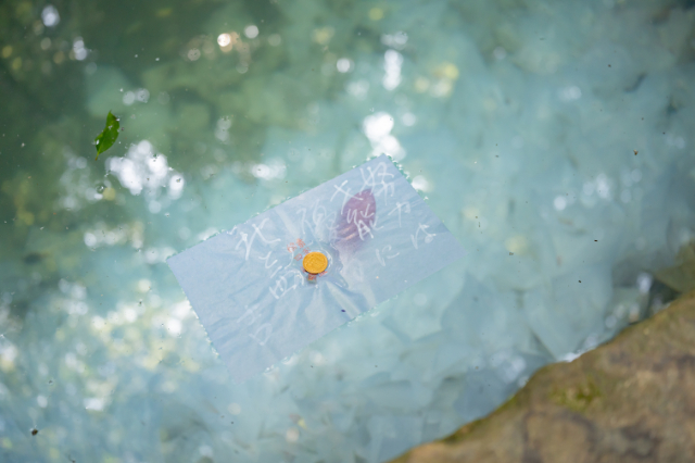 沈む速さや位置でご縁を占う「縁占い」が体験できます。