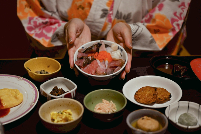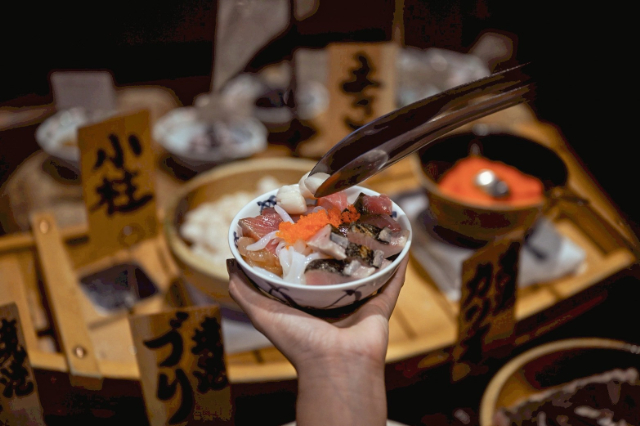 近隣漁港から毎日仕入れる新鮮な魚でセルフ海鮮丼がつくれるのも魅力!