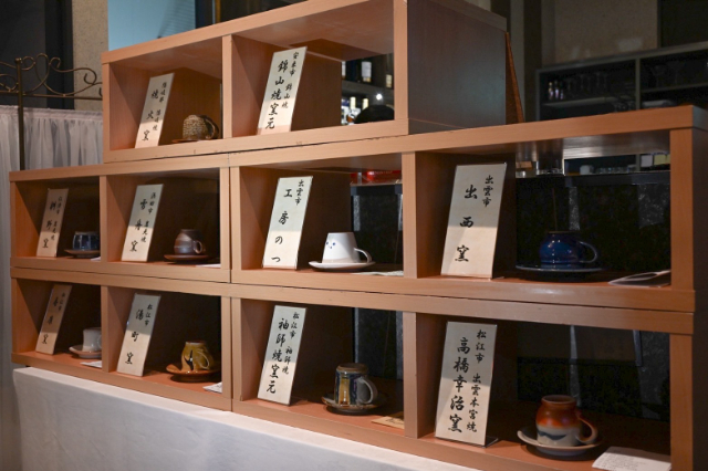 コーヒーは、島根県の窯元で作られたカップからお気に入りを選べるスタイル。